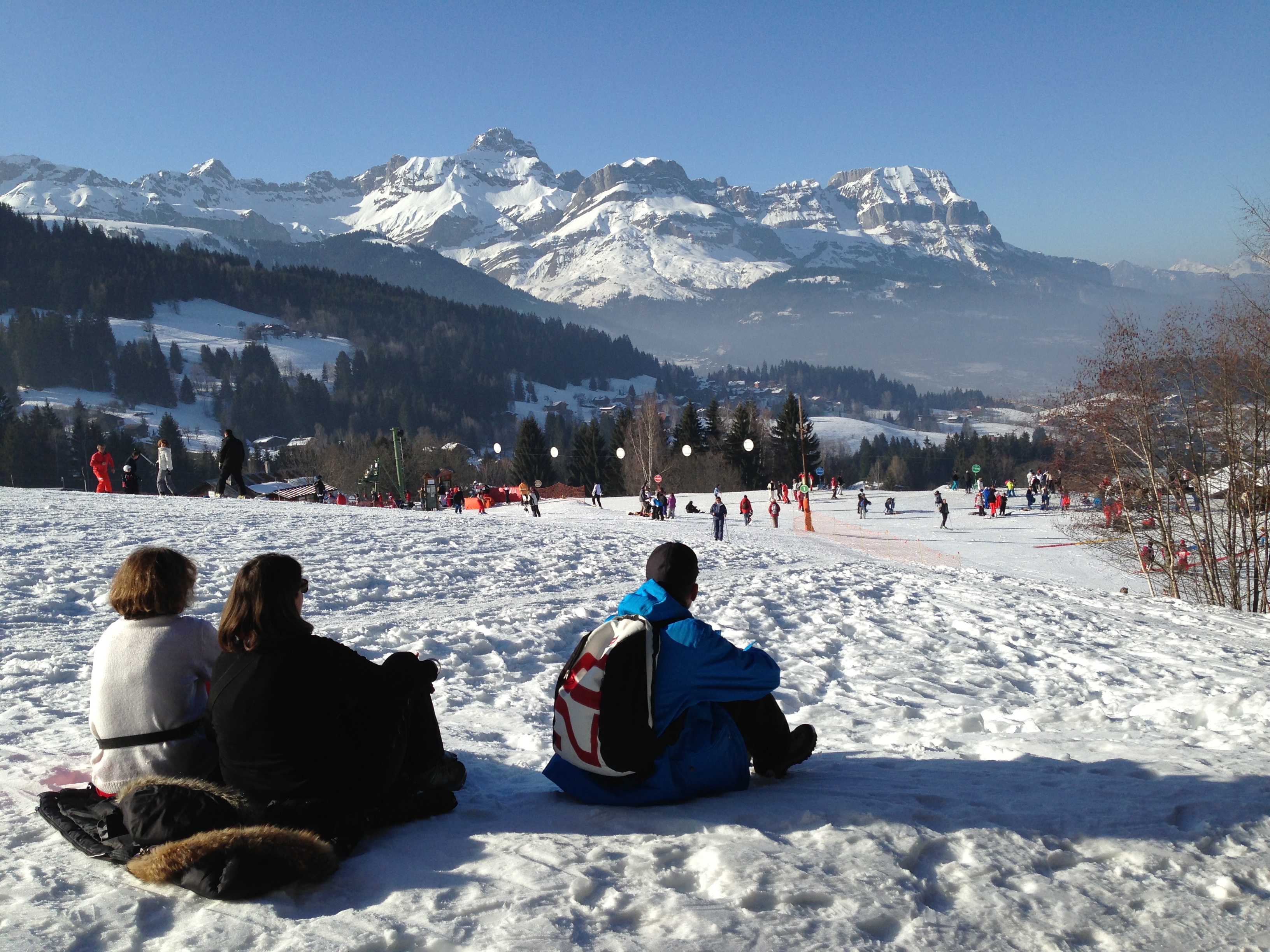 So we decided to go and explore, and how glad we were that we did. We know it has stunning views back across to Combloux and to Mont Blanc but the skiing was superb too. People come here to watch paragliders take off, toboggan, walk and just sit and enjoy it all. Not many come to ski, so it was even more idyllic. It’s a fantastic area to walk in during summer too with huge dramatic peaks soaring up behind you and vast meadows of flowers.