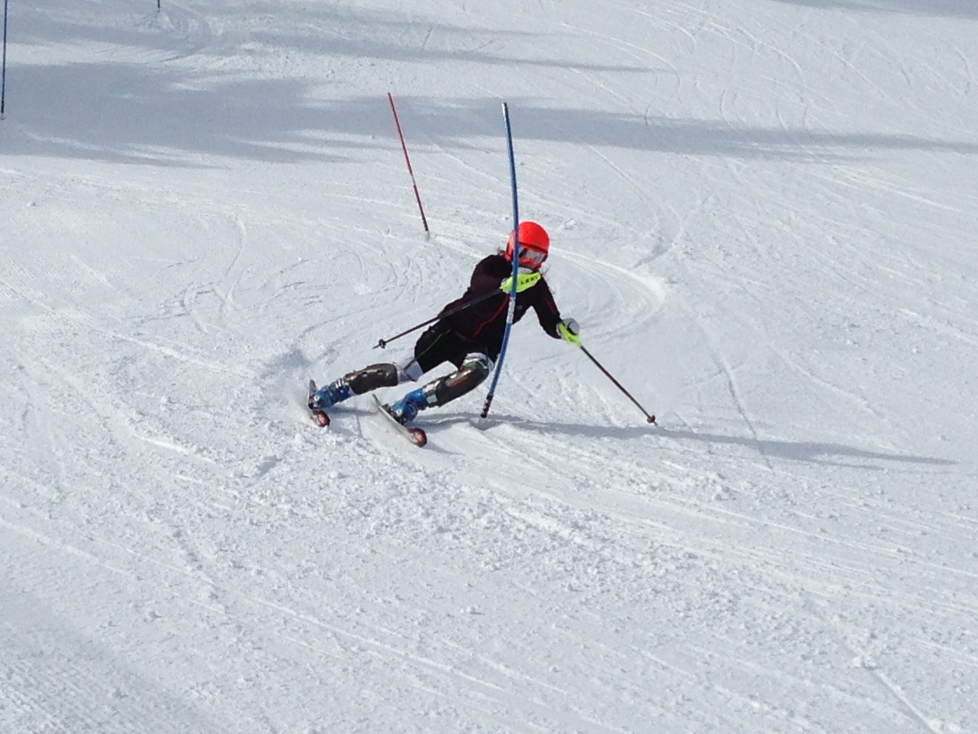 One slope in particular is often sectioned off from the main hoards and reserved for training for slalom. Sometimes the giant slalom gates are put out for ski school classes who will be assessed for their bronze, silver or gold stars. The slalom course however is used by teenagers and older skiers training for trials or just for the fun of it. And having tried just a few of these poles once (and not going through them like these guys do, but around them!) it’s very tricky to go at speed and get it right. This girl was about 14 I’d say.