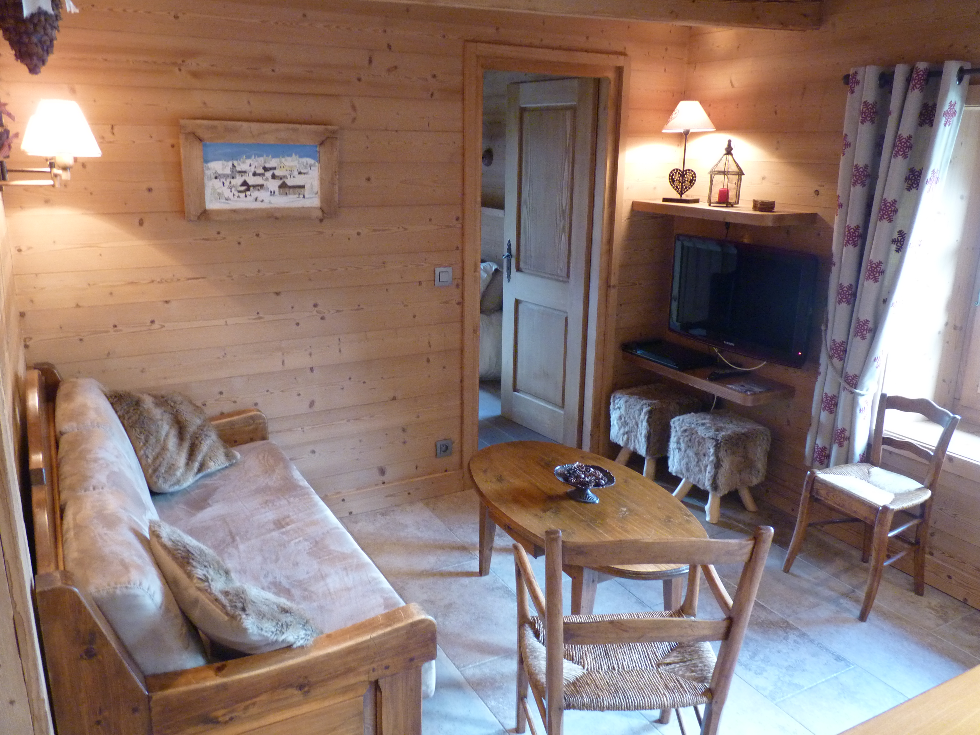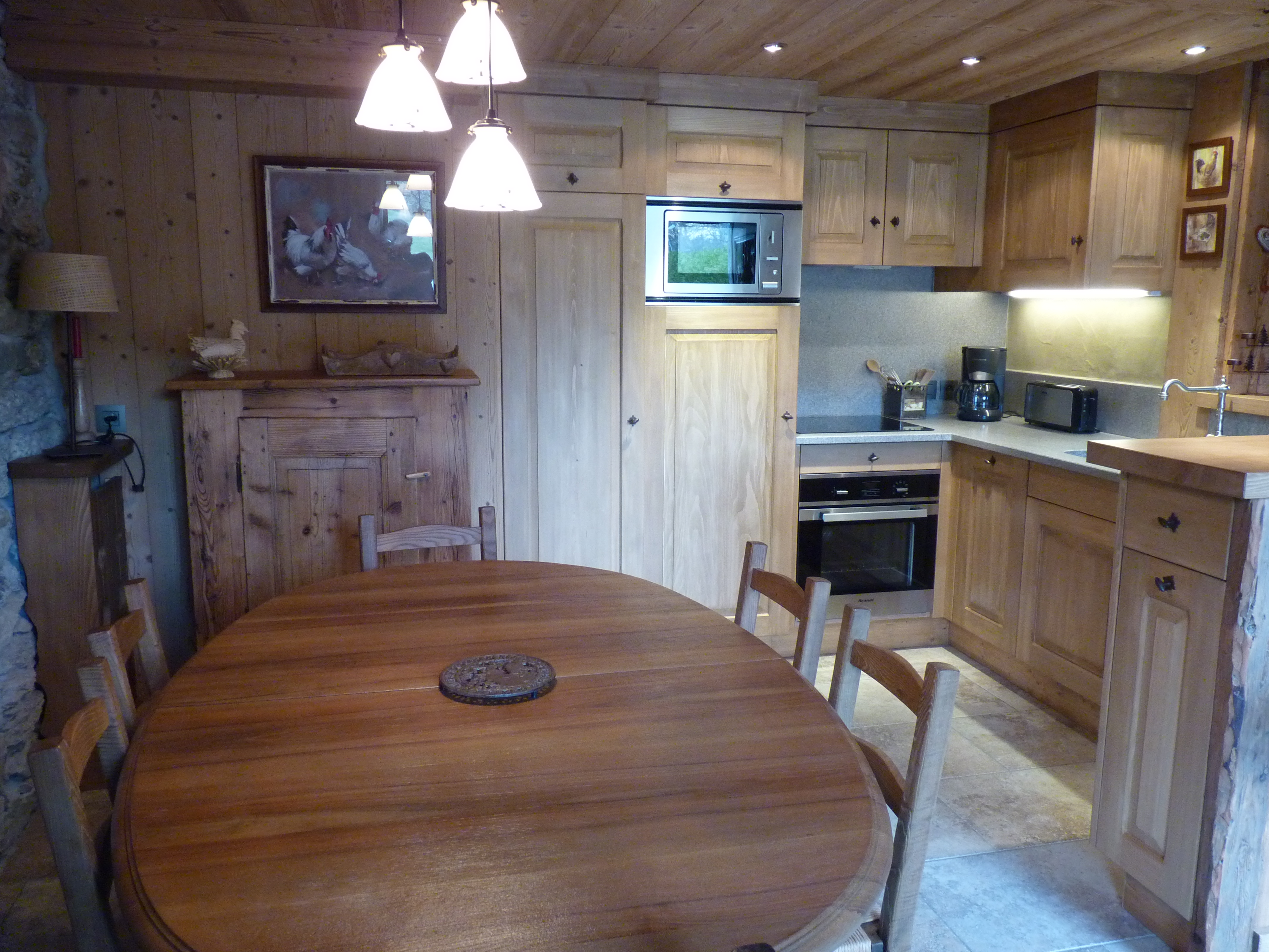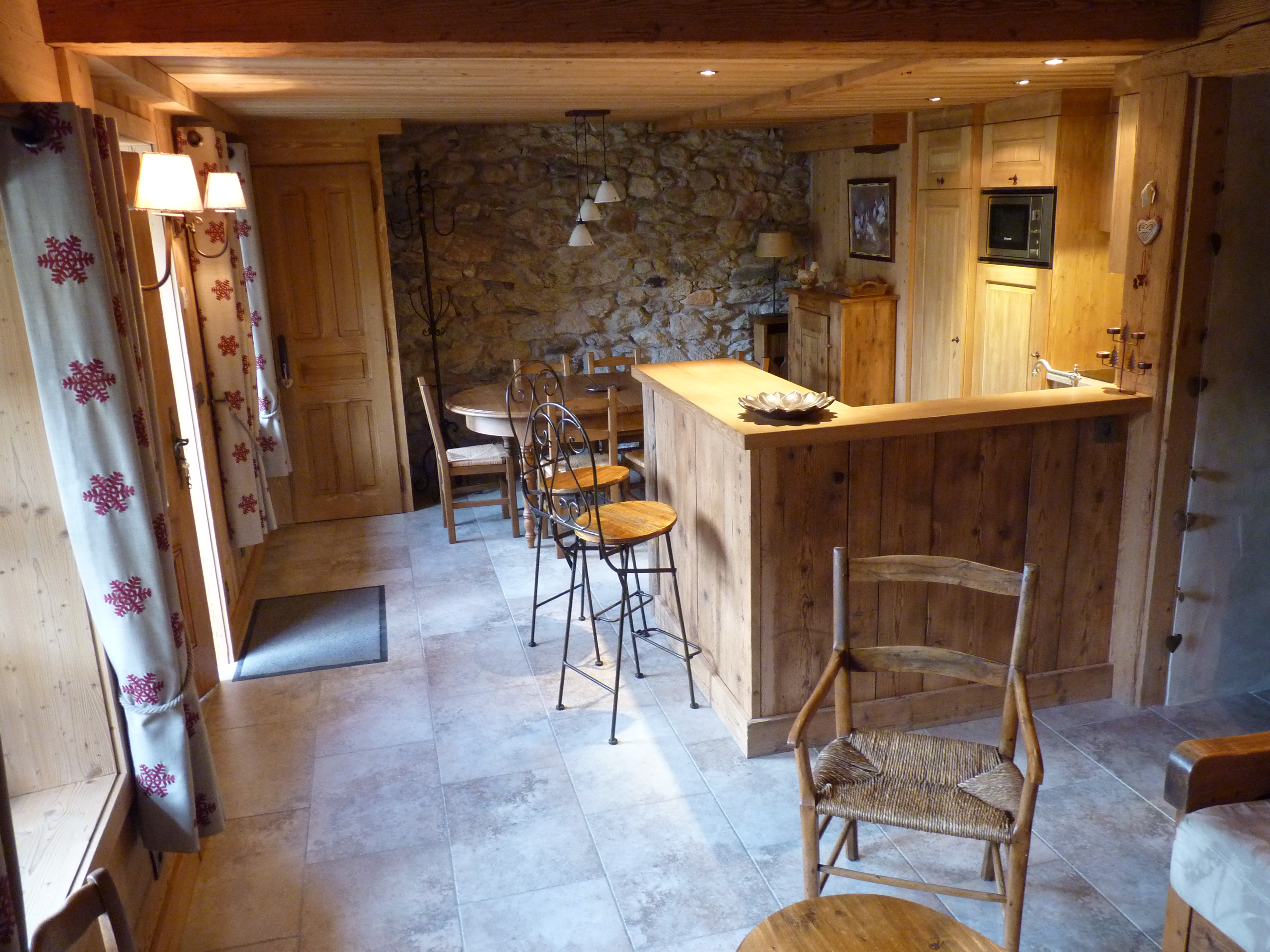 The accommodation is a traditional Savoyarde apartment, built of wood and stone. It forms part of a newly renovated farmhouse, set in the small hamlet of Le Pelloux, a minutes’ drive or a 10 minute walk from Combloux village. The apartment features: