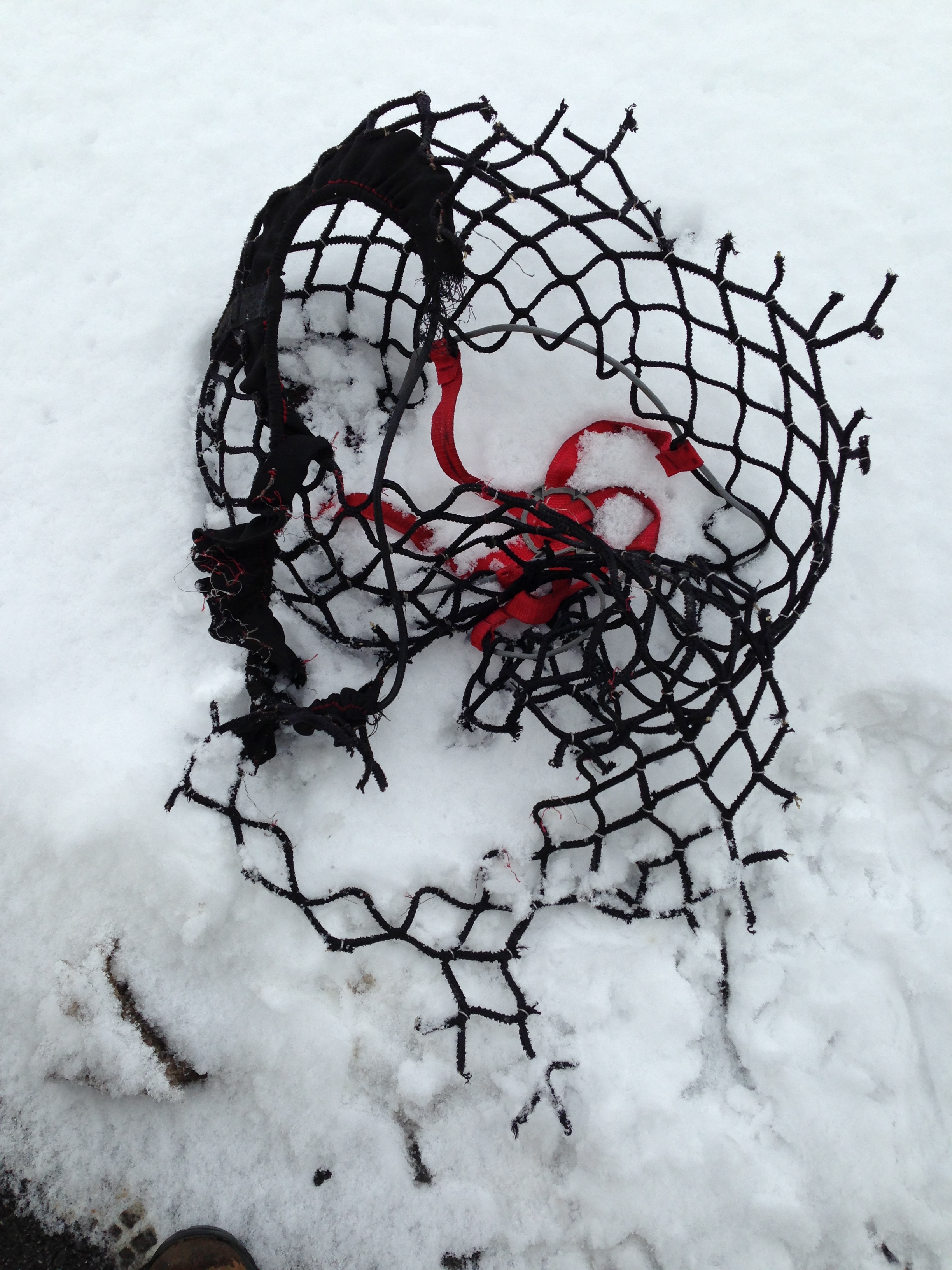 However, it’s a legal requirement to carry equipment for the tyres (chains or heavy duty grips) so that if you wish to drive in snowy conditions, you should be able to do so safely. I have both chains and ‘easygrips’. There are pros and cons to each. Mostly cons. To both. However, the grips went on today and no sooner was I half a mile from home when one of them decided to shred and wrap itself around my axle. Impossible to get it off on my own, so I was very impressed that I’d managed to block the road in front of a pair of Council workers (possibly those same two), one of whom helped me disentangle the offending grip.